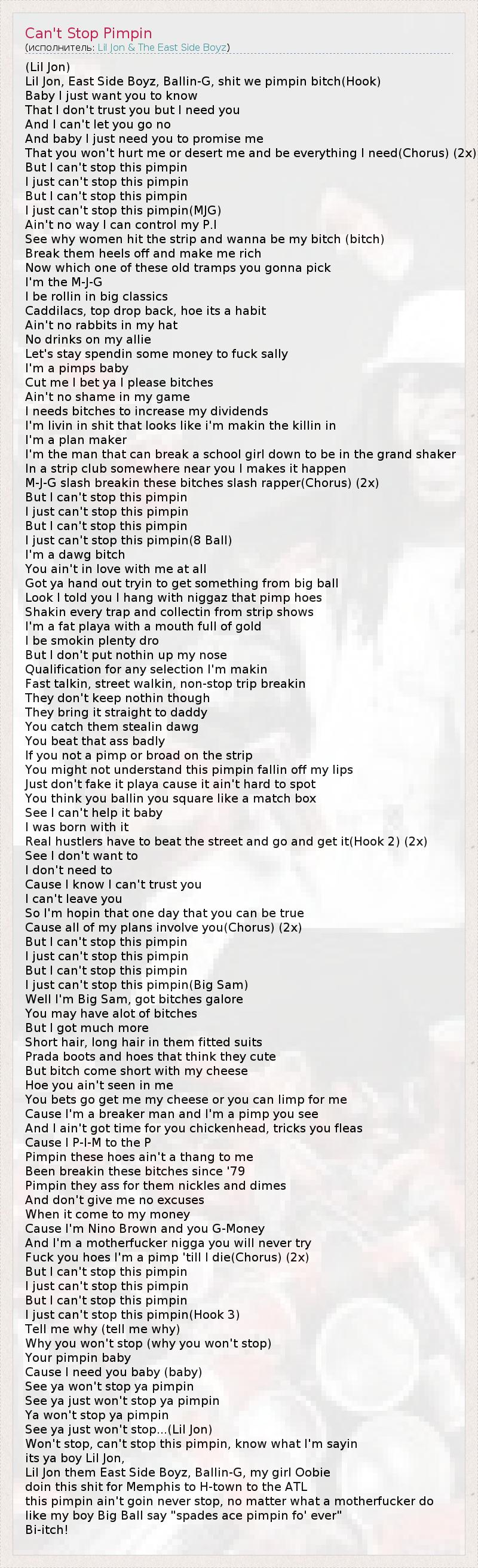 А как ты думаешь, о чем песня "Can't Stop Pimpin" ?