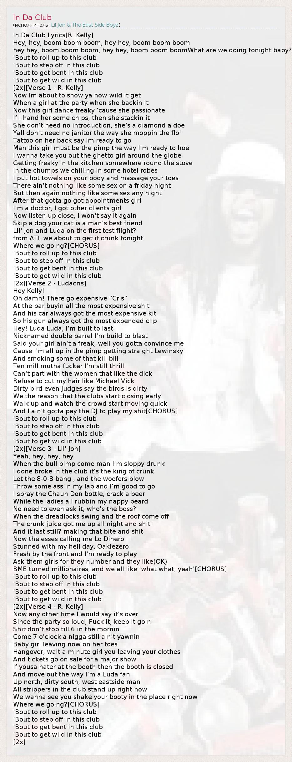 А как ты думаешь, о чем песня "In Da Club" ?