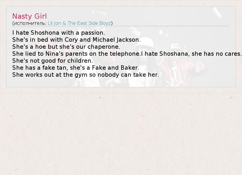А как ты думаешь, о чем песня "Nasty Girl" ?