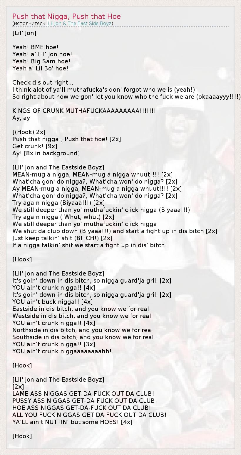 А как ты думаешь, о чем песня "Push that Nigga, Push that Hoe" ?