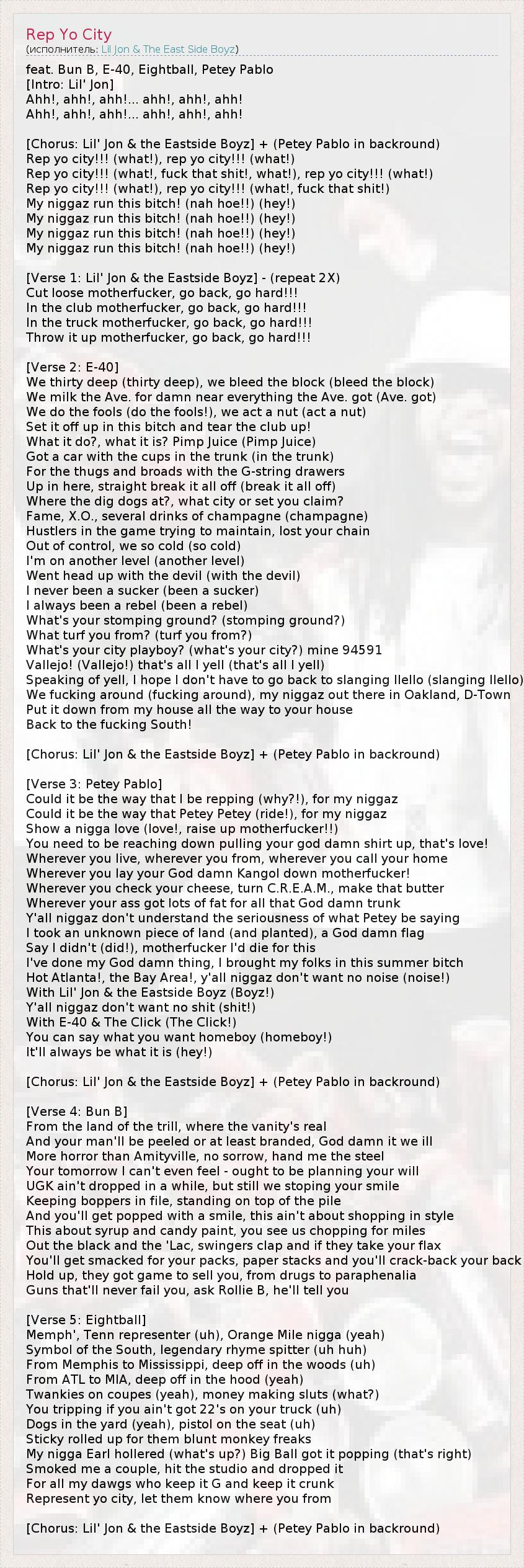 feat. Bun B, E-40, Eightball, Petey Pablo
