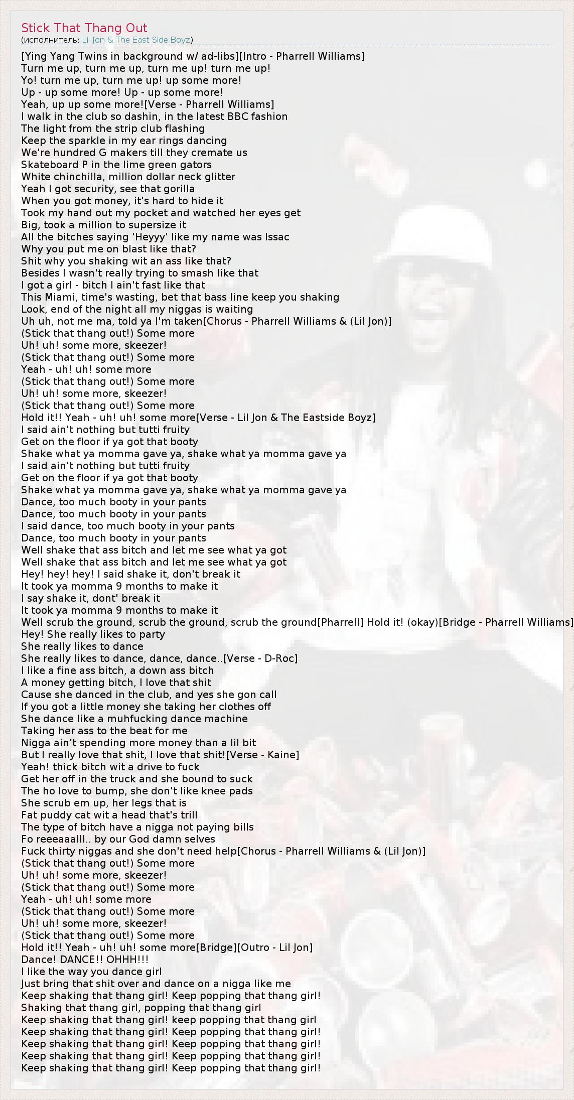 А как ты думаешь, о чем песня "Stick That Thang Out" ?