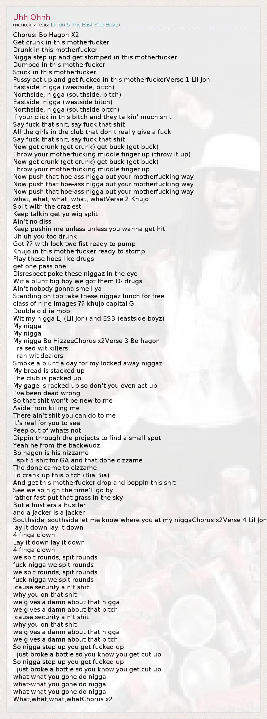 Pussy act up and get fucked in this motherfuckerVerse 1 Lil Jon