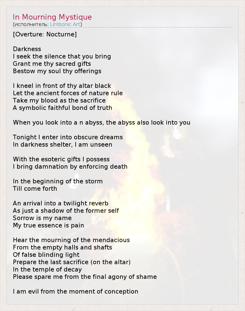 А как ты думаешь, о чем песня "In Mourning Mystique" ?