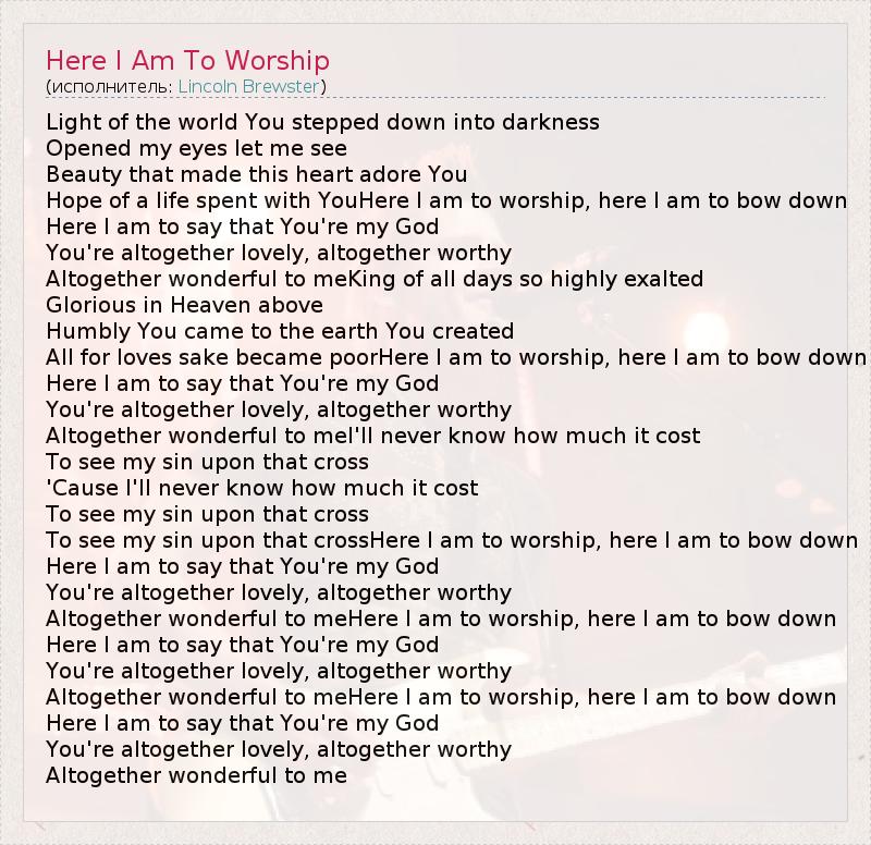 А как ты думаешь, о чем песня "Here I Am To Worship" ?