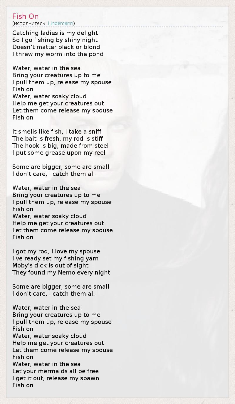1 – Игра слов. Моби Дик (Moby-Dick) - роман Германа Мелвилла, в котором сам Моби-Дик, гигантский белый кит, - убийца китобоев. Слово "dick" означает "половой член". Дословно строчка "Moby's dick is out of sight" - "Член Моби не видно". Слово "nemo" на сленге означает "половой член". В общем, рыбы, которых он ловит, не видят член Моби-Дика, а видят член исполнителя каждую ночь.