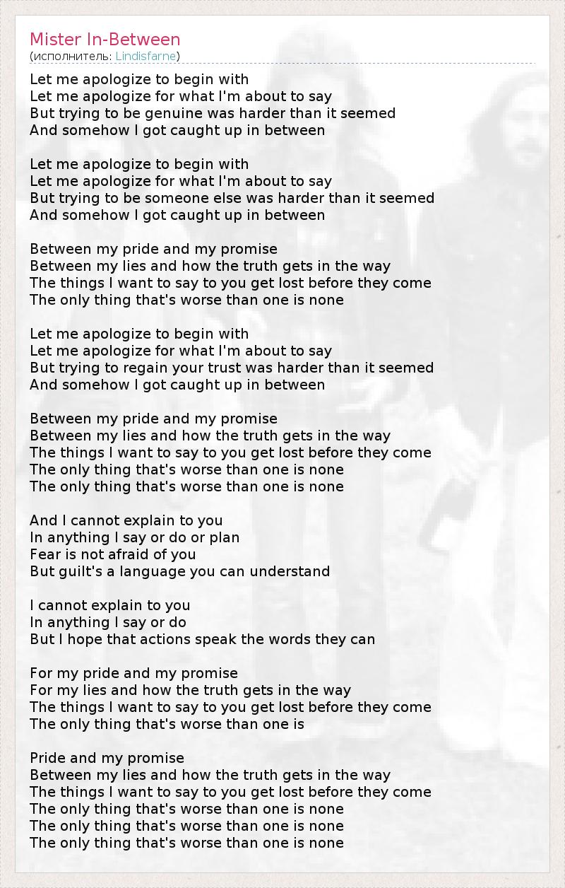 А как ты думаешь, о чем песня "Mister In-Between" ?