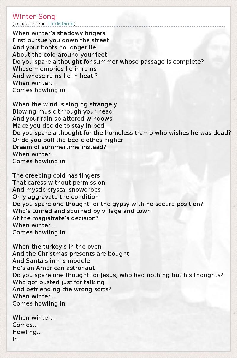 А как ты думаешь, о чем песня "Winter Song" ?