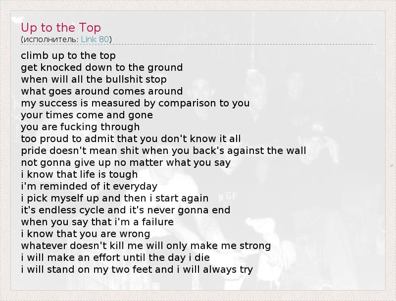 А как ты думаешь, о чем песня "Up to the Top" ?