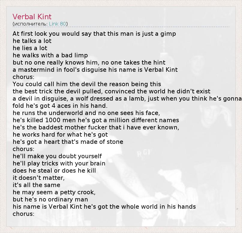 А как ты думаешь, о чем песня "Verbal Kint" ?