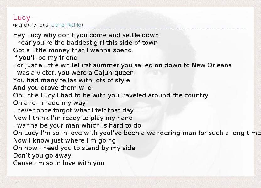 Oh Lucy I'm so in love with youI've been a wandering man for such a long time