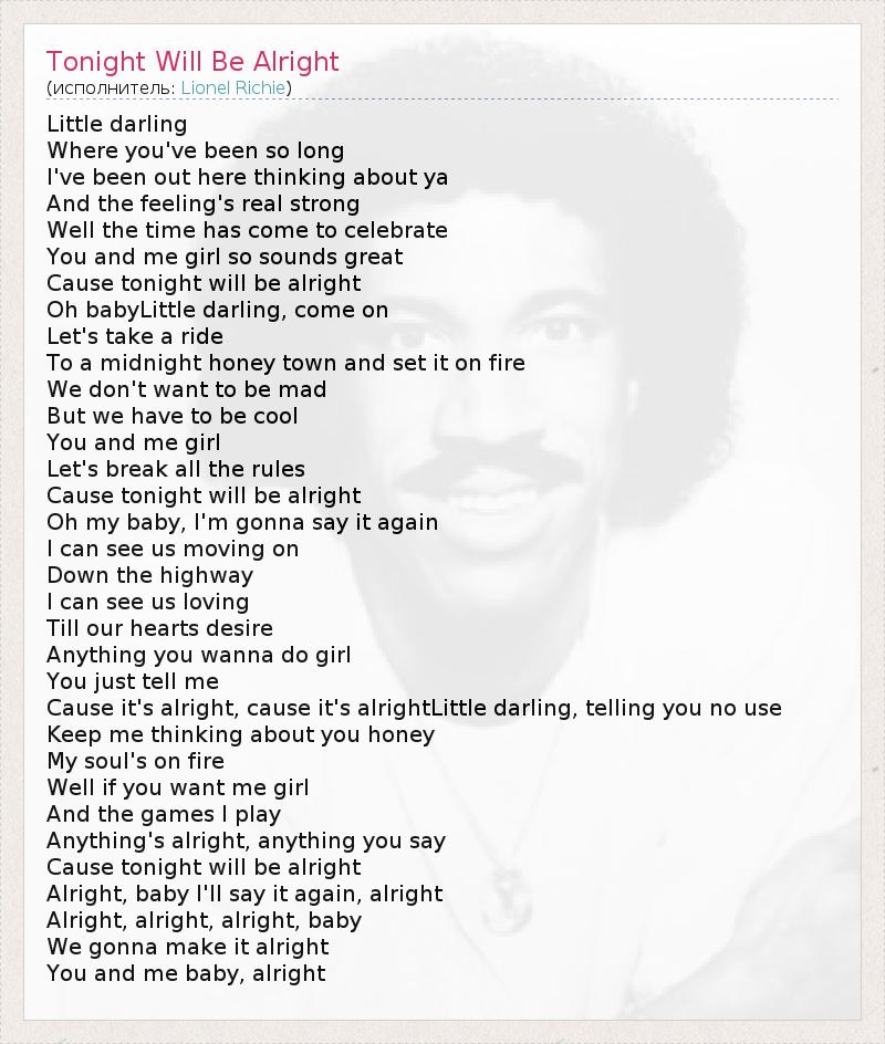 А как ты думаешь, о чем песня "Tonight Will Be Alright" ?