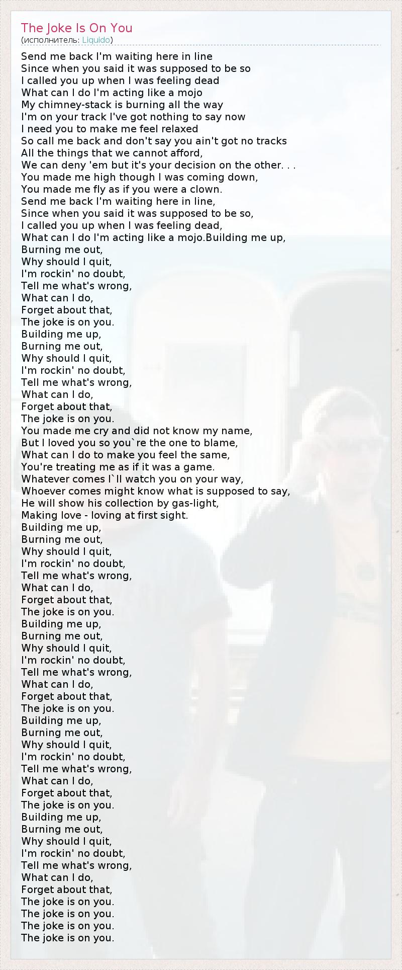 А как ты думаешь, о чем песня "The Joke Is On You" ?