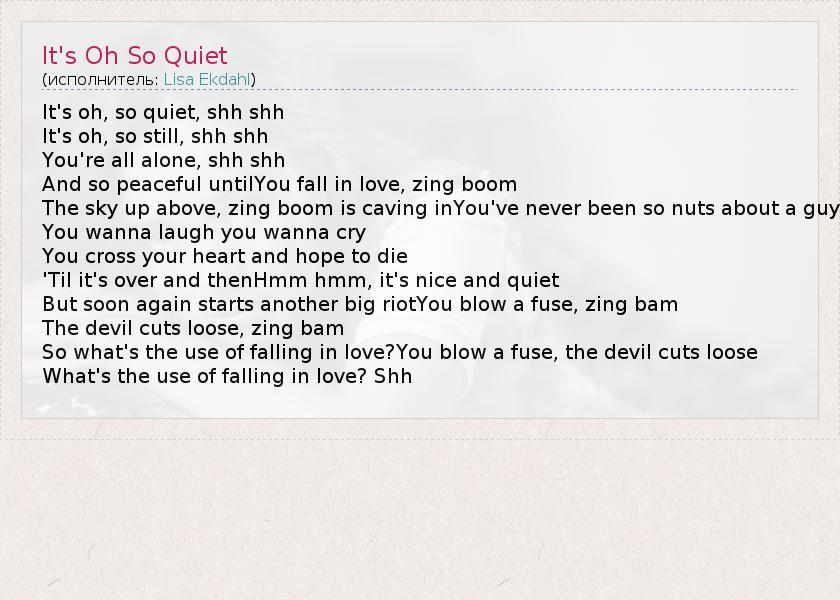 А как ты думаешь, о чем песня "It's Oh So Quiet" ?