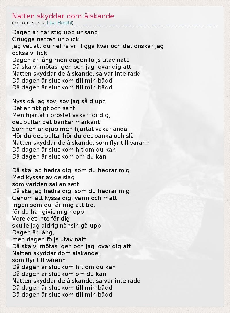 ГлавнаяИсполнителиLisa EkdahlNatten skyddar dom älskande