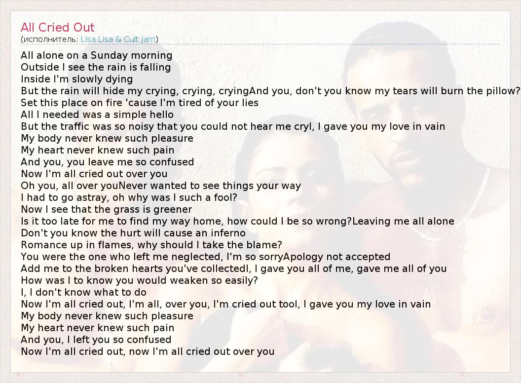 А как ты думаешь, о чем песня "All Cried Out" ?