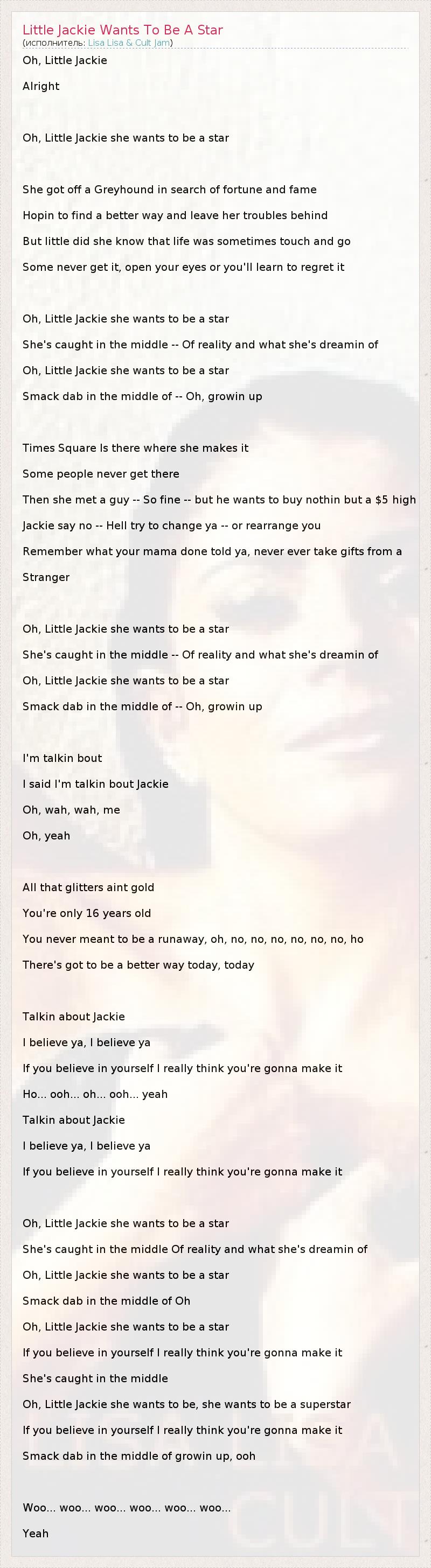 ГлавнаяИсполнителиLisa Lisa & Cult JamLittle Jackie Wants To Be A Star