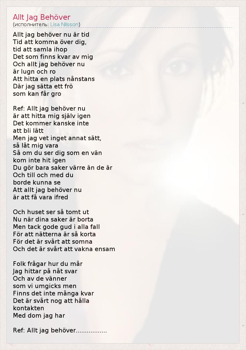 А как ты думаешь, о чем песня "Allt Jag Behöver" ?
