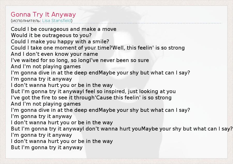 А как ты думаешь, о чем песня "Gonna Try It Anyway" ?