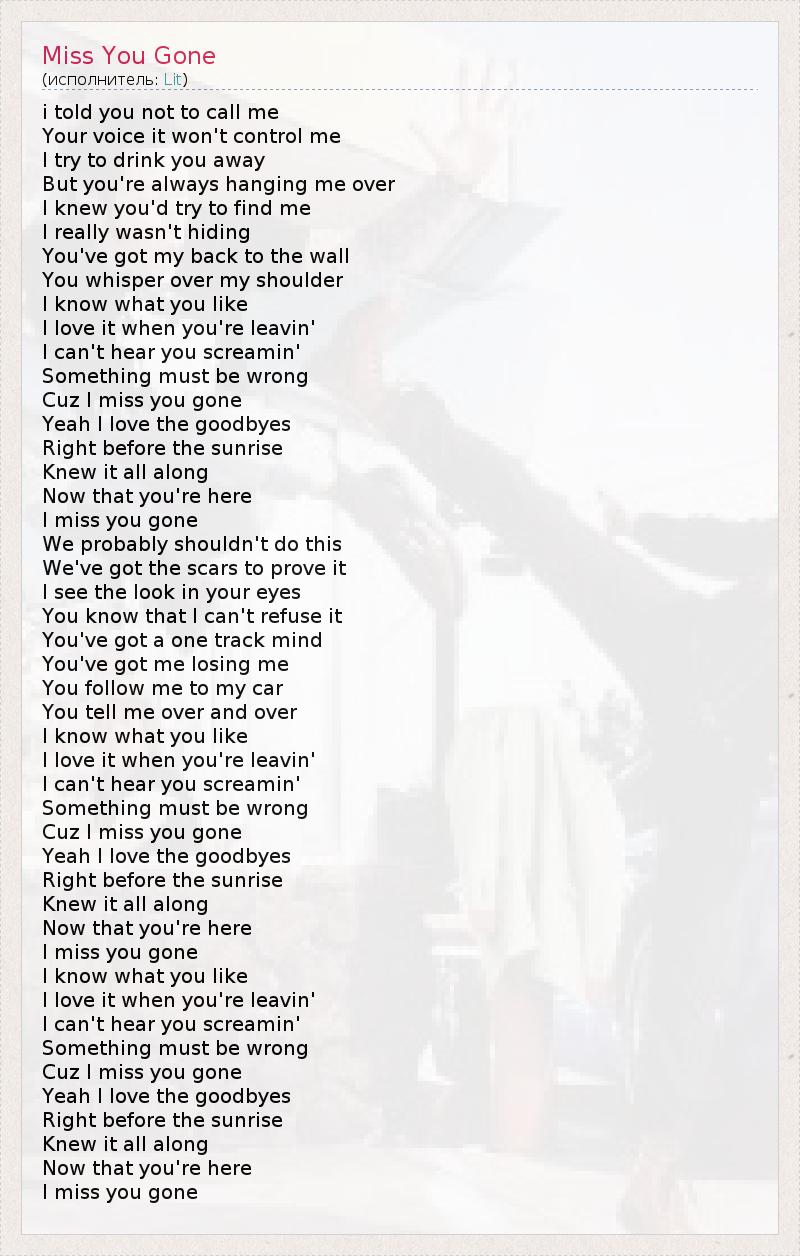 А как ты думаешь, о чем песня "Miss You Gone" ?