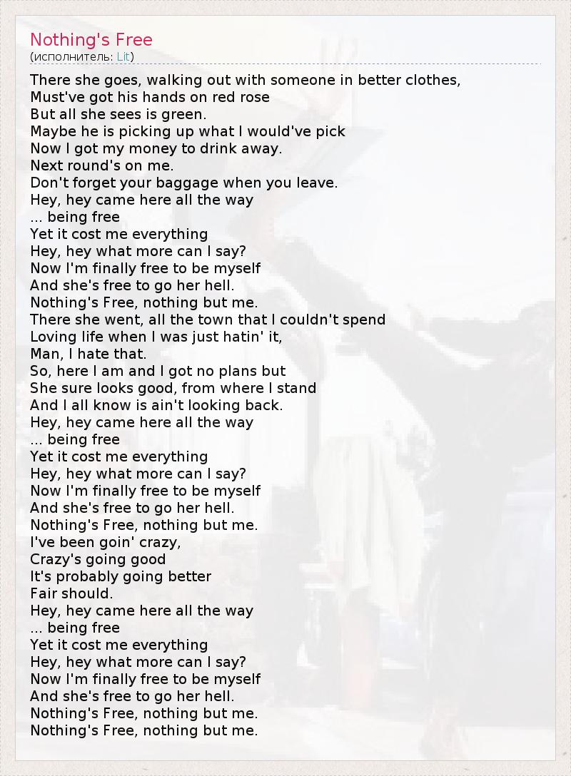 А как ты думаешь, о чем песня "Nothing's Free" ?