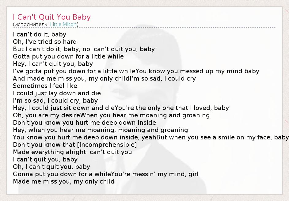 Oh, I can't quit you, baby