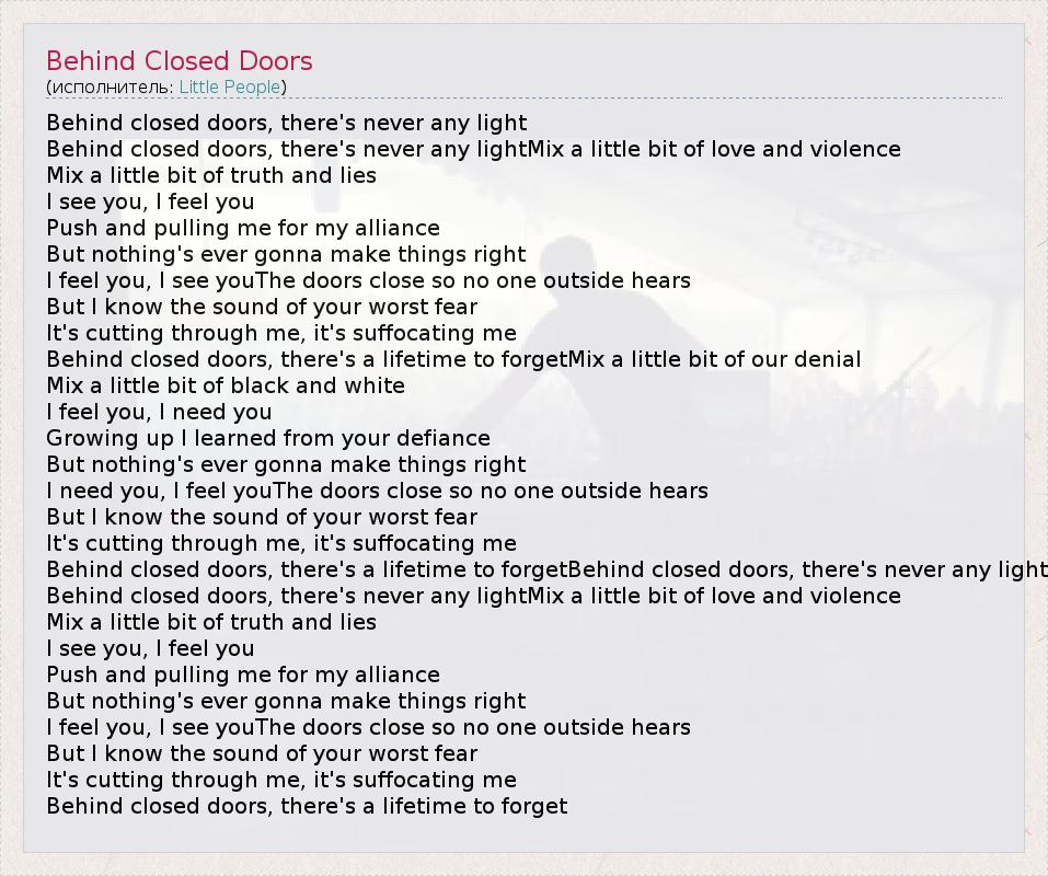 А как ты думаешь, о чем песня "Behind Closed Doors" ?