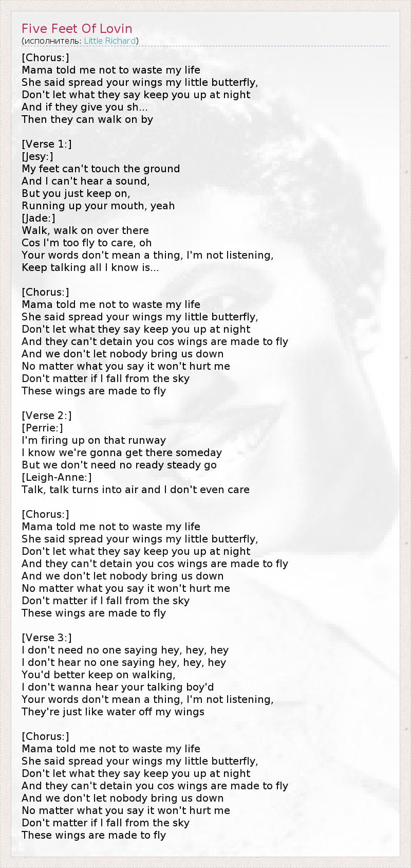 А как ты думаешь, о чем песня "Five Feet Of Lovin" ?