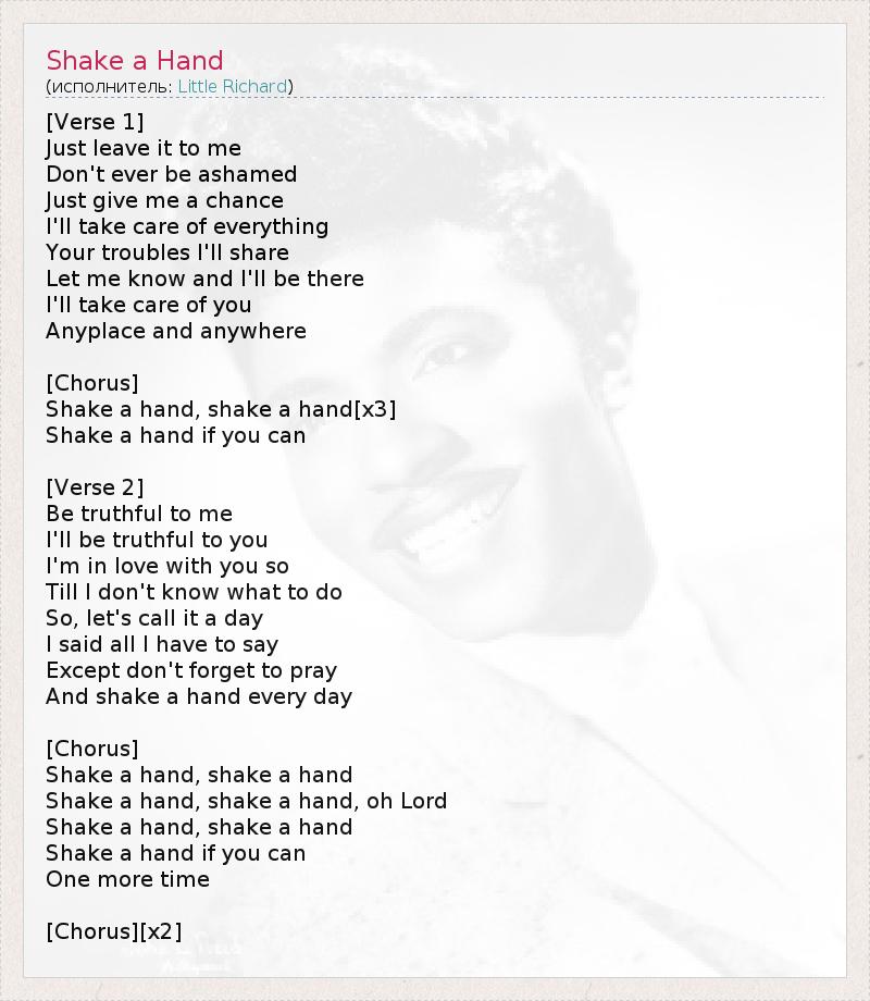 А как ты думаешь, о чем песня "Shake a Hand" ?