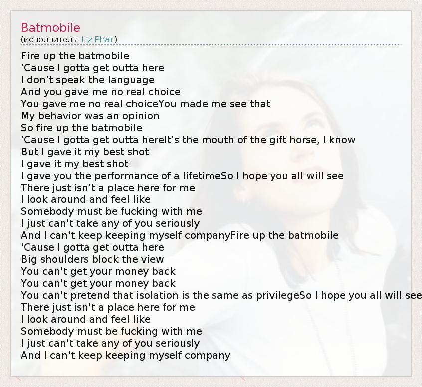 'Cause I gotta get outta hereIt's the mouth of the gift horse, I know
