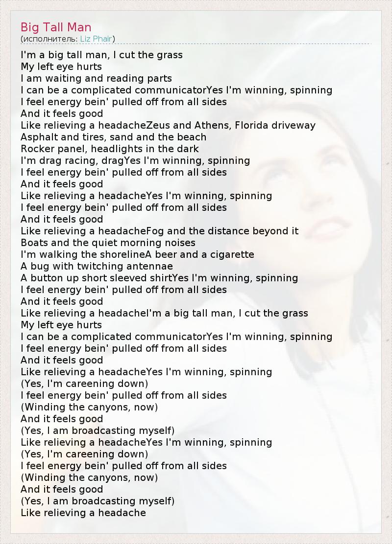 А как ты думаешь, о чем песня "Big Tall Man" ?