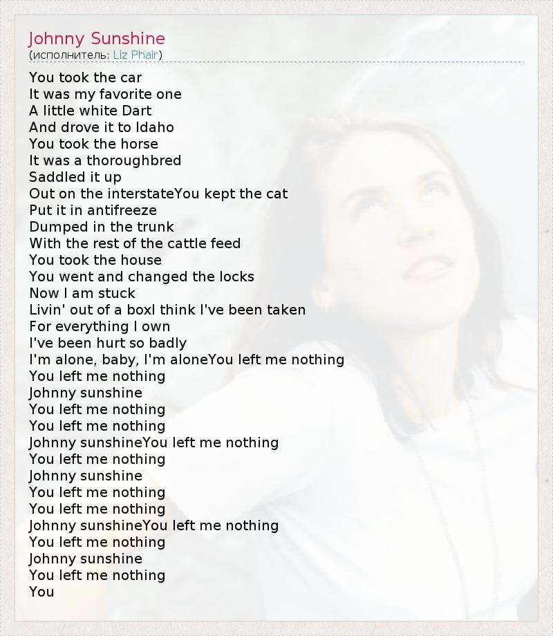 А как ты думаешь, о чем песня "Johnny Sunshine" ?