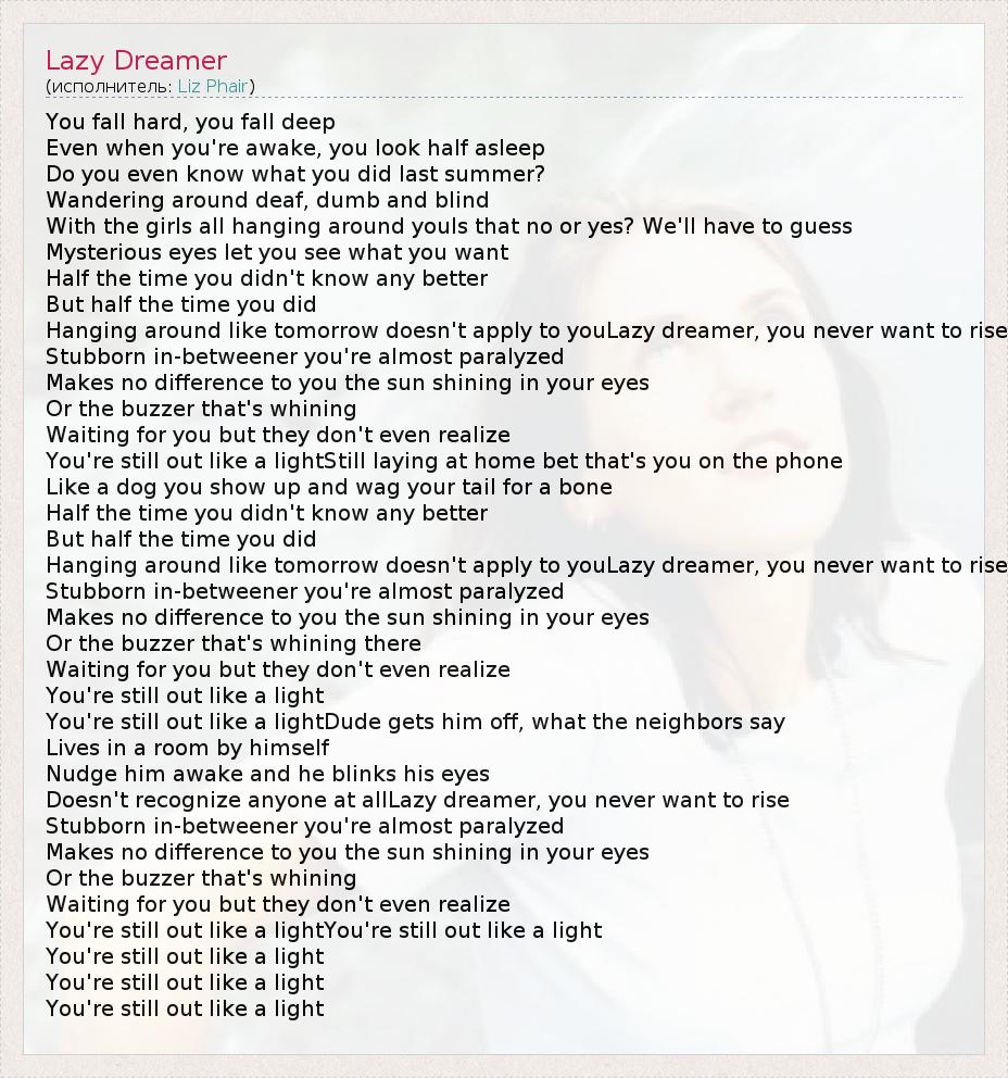 А как ты думаешь, о чем песня "Lazy Dreamer" ?