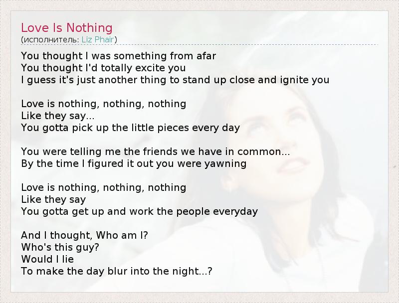 А как ты думаешь, о чем песня "Love Is Nothing" ?