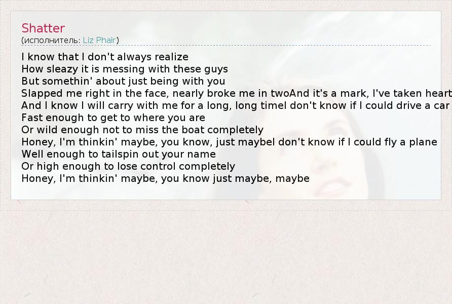 Это интересно:Лиз Фэйр (урожденная Элизабет Кларк Фэйр) появилась на свет 17 Апреля 1967 года в Нью-Хейвен, штат Коннектикут, СШААмериканская певица и гитаристка.Лиз Фэйр начала свою карьеру в 1990-х годах, путем самостоятельной записи LO-FI аудио кассет, до подписания с Matador Records.После чего она становится одним из ведущих андеграундных музыкантов инди-рока 1990-х годов. В 2003 году Лиз Фэйр записывает... продолжение