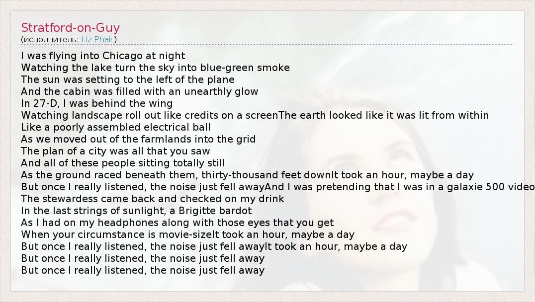 А как ты думаешь, о чем песня "Stratford-on-Guy" ?