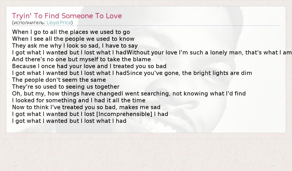 ГлавнаяИсполнителиLloyd PriceTryin' To Find Someone To Love