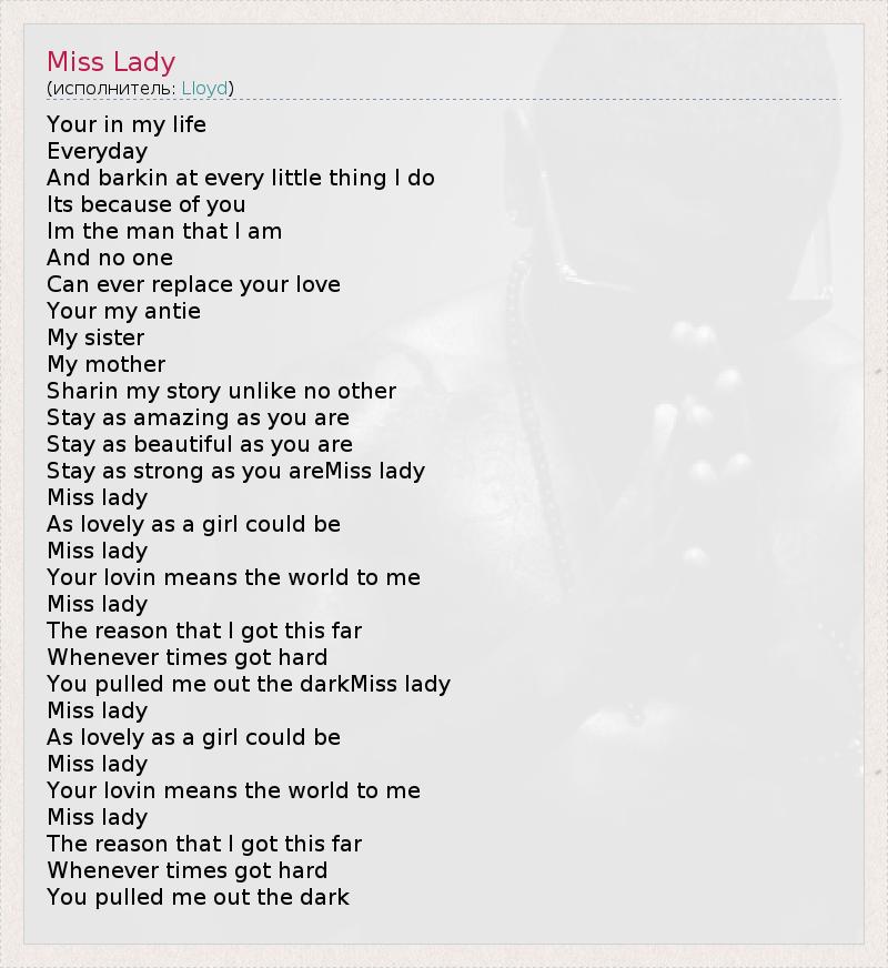 А как ты думаешь, о чем песня "Miss Lady" ?