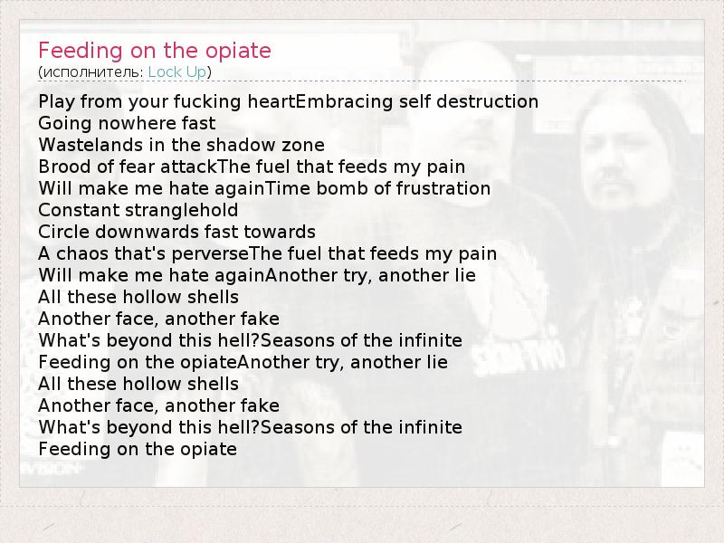 А как ты думаешь, о чем песня "Feeding on the opiate" ?