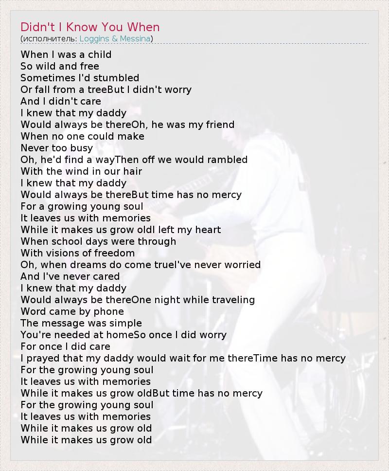 А как ты думаешь, о чем песня "Didn't I Know You When" ?