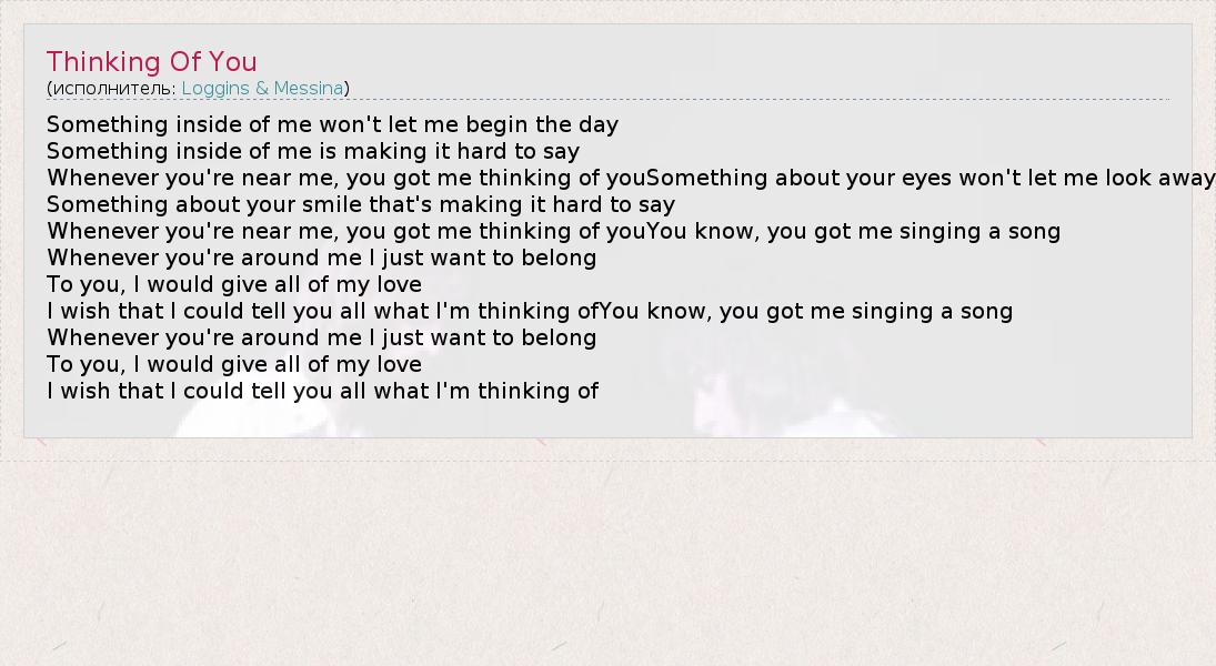 А как ты думаешь, о чем песня "Thinking Of You" ?