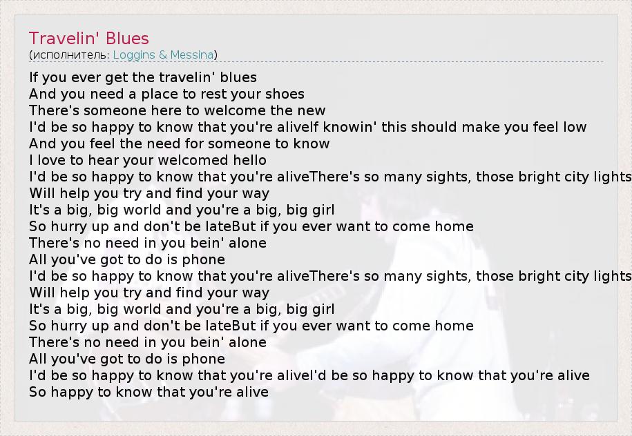 А как ты думаешь, о чем песня "Travelin' Blues" ?
