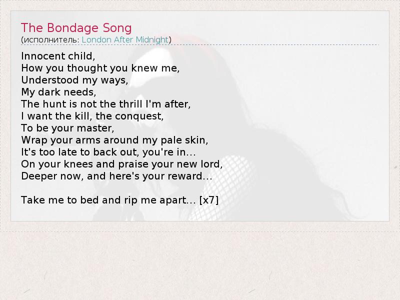 А как ты думаешь, о чем песня "The Bondage Song" ?