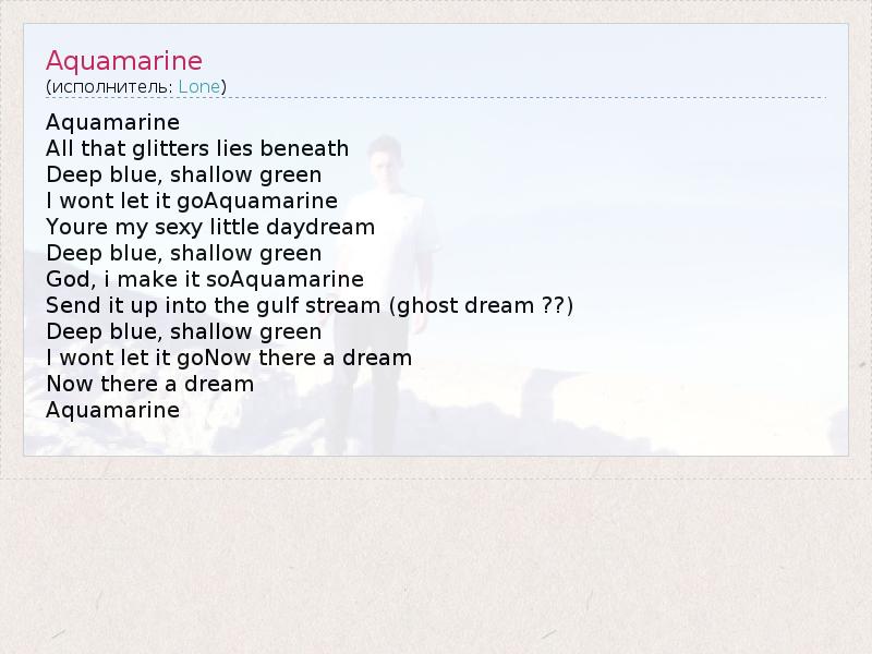А как ты думаешь, о чем песня "Aquamarine" ?