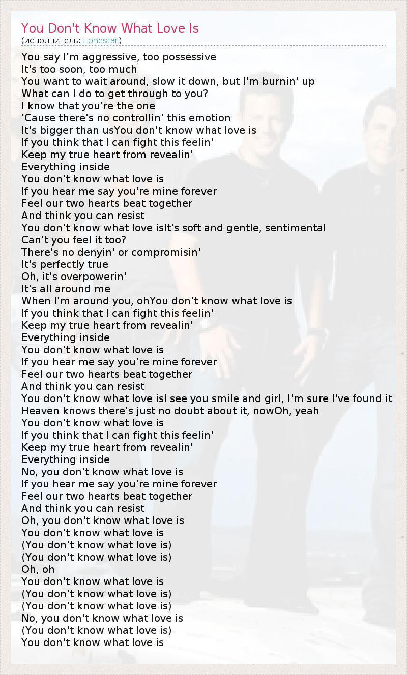ГлавнаяИсполнителиLonestarYou Don't Know What Love Is