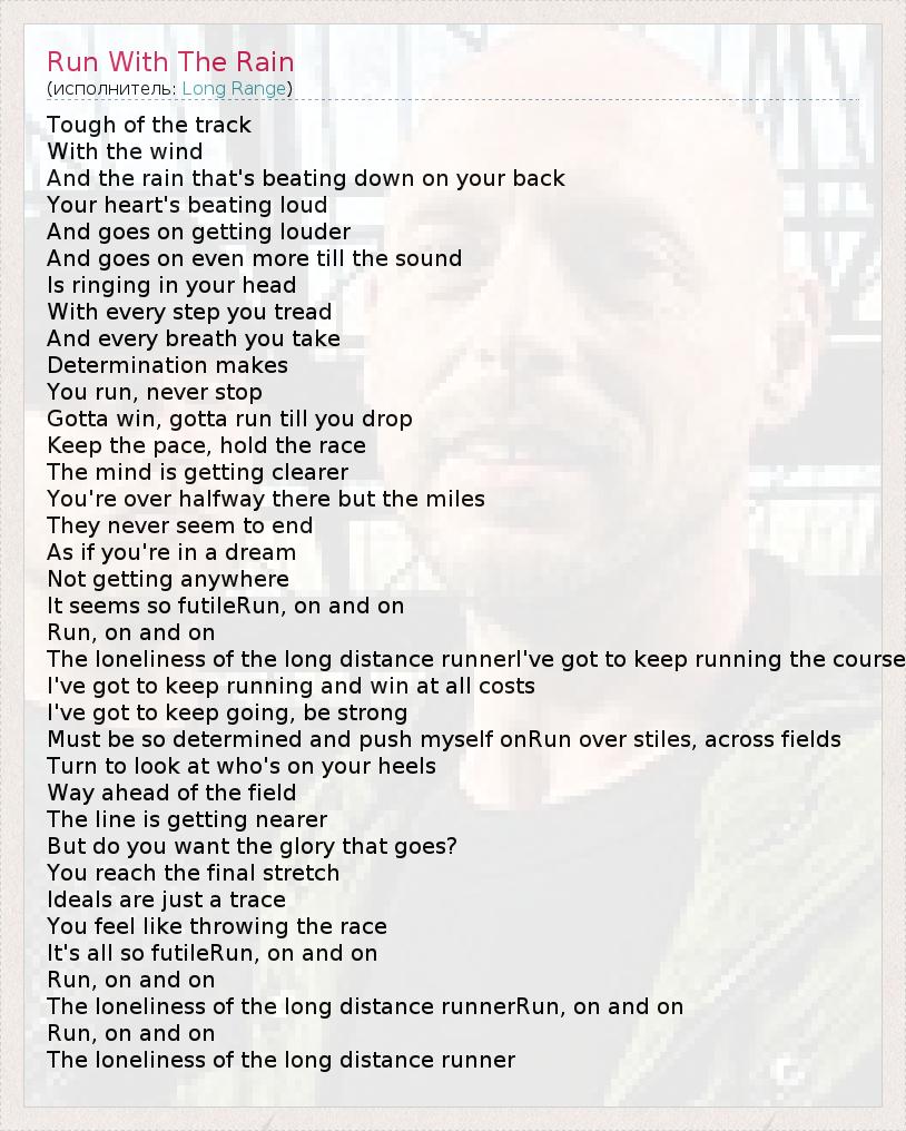 А как ты думаешь, о чем песня "Run With The Rain" ?