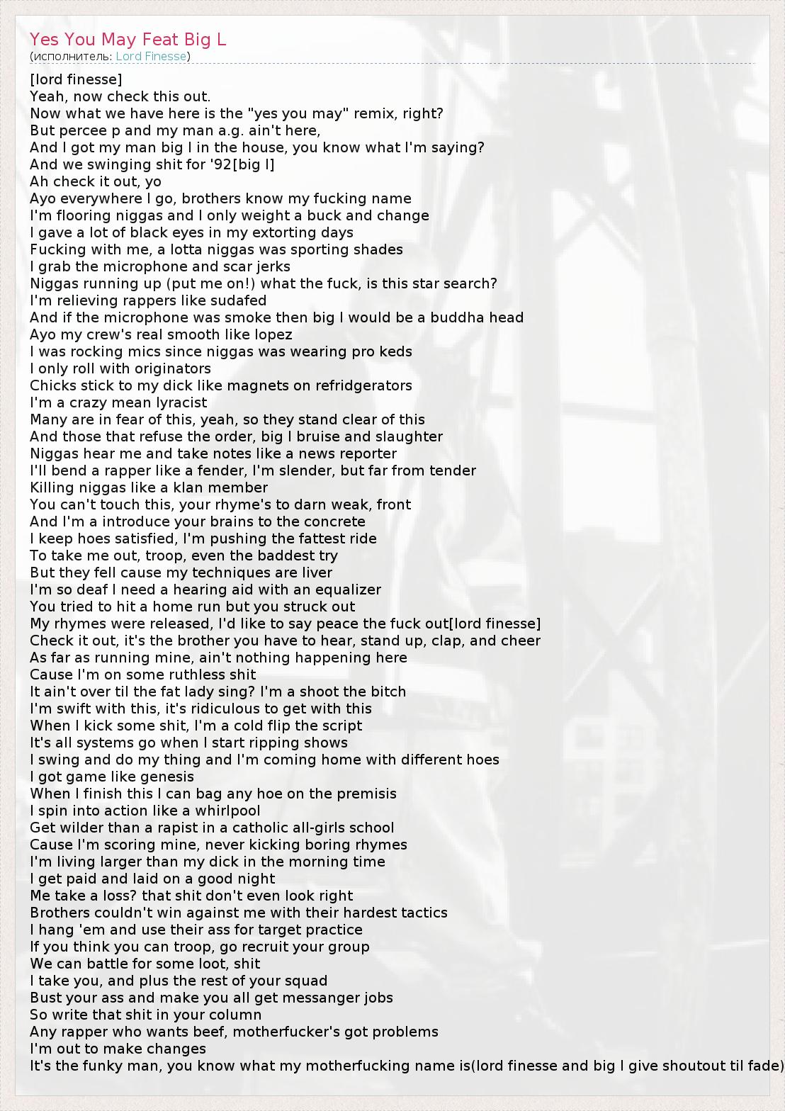 А как ты думаешь, о чем песня "Yes You May Feat Big L" ?