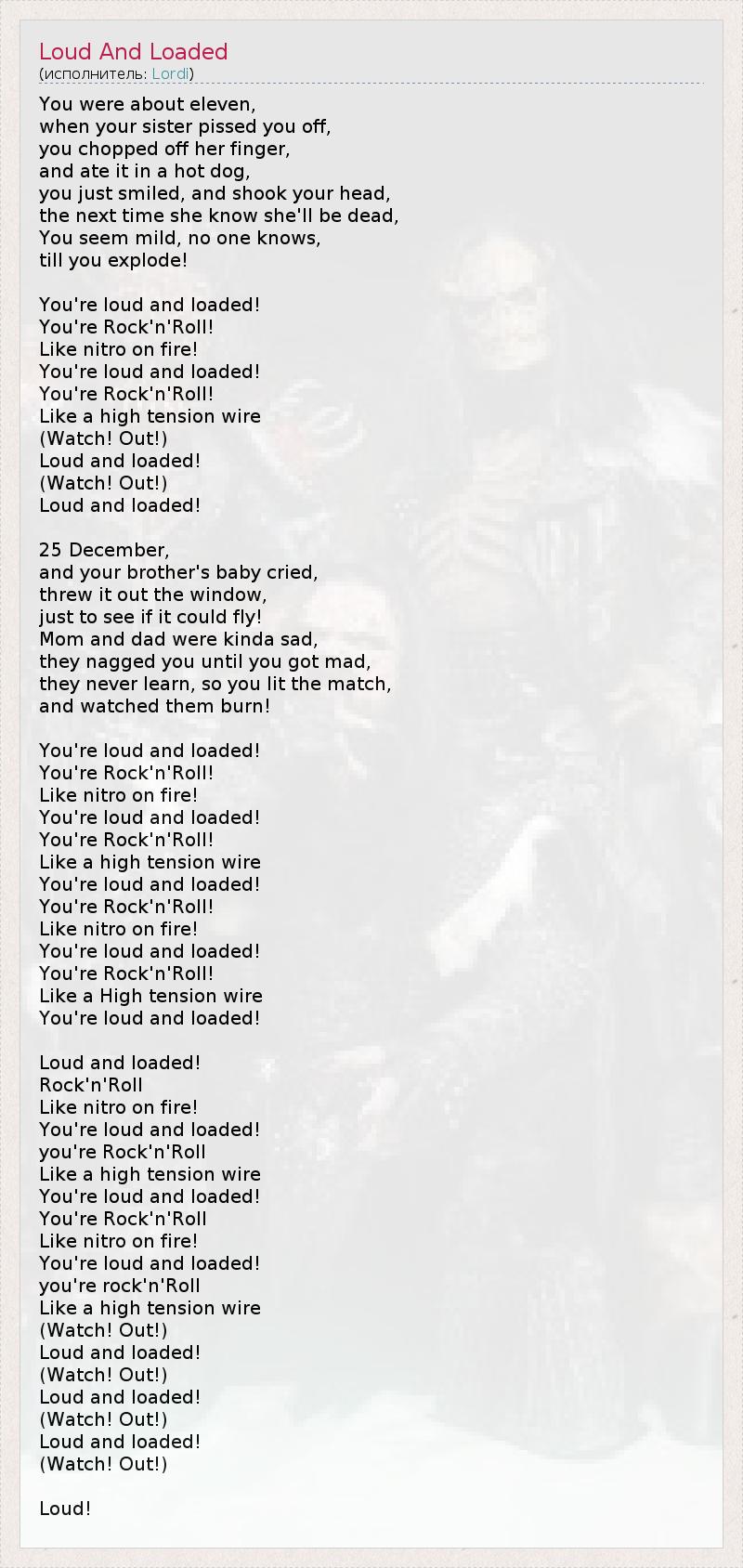 А как ты думаешь, о чем песня "Loud And Loaded" ?