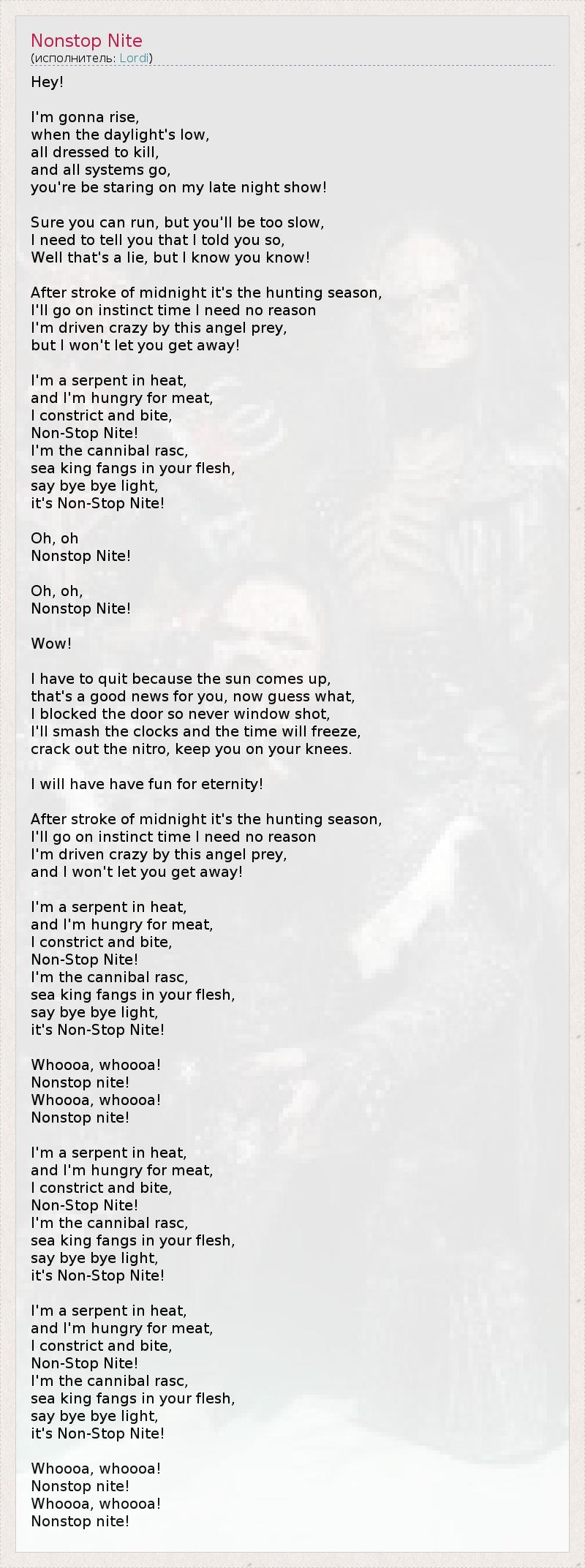 А как ты думаешь, о чем песня "Nonstop Nite" ?