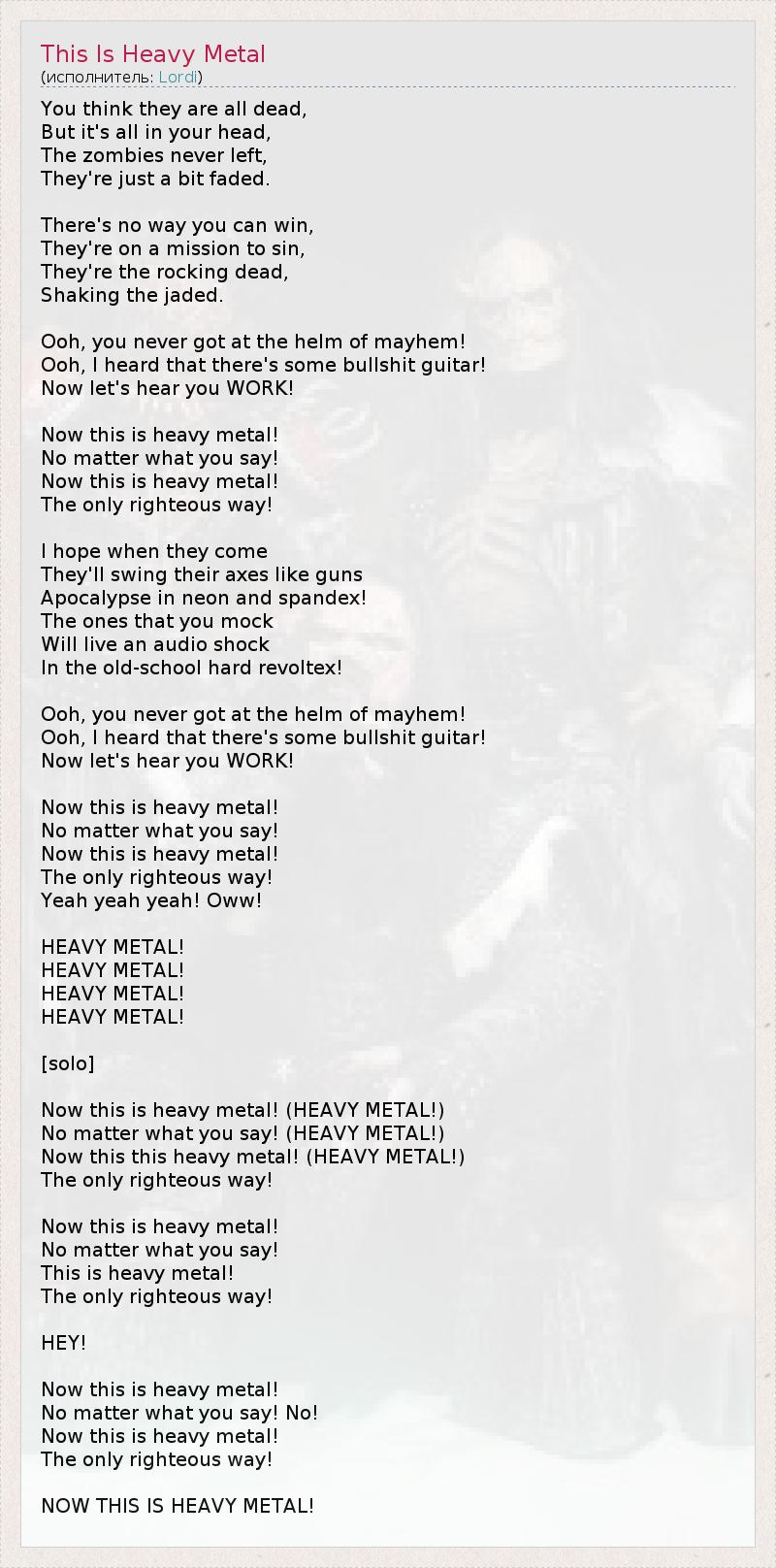 А как ты думаешь, о чем песня "This Is Heavy Metal" ?